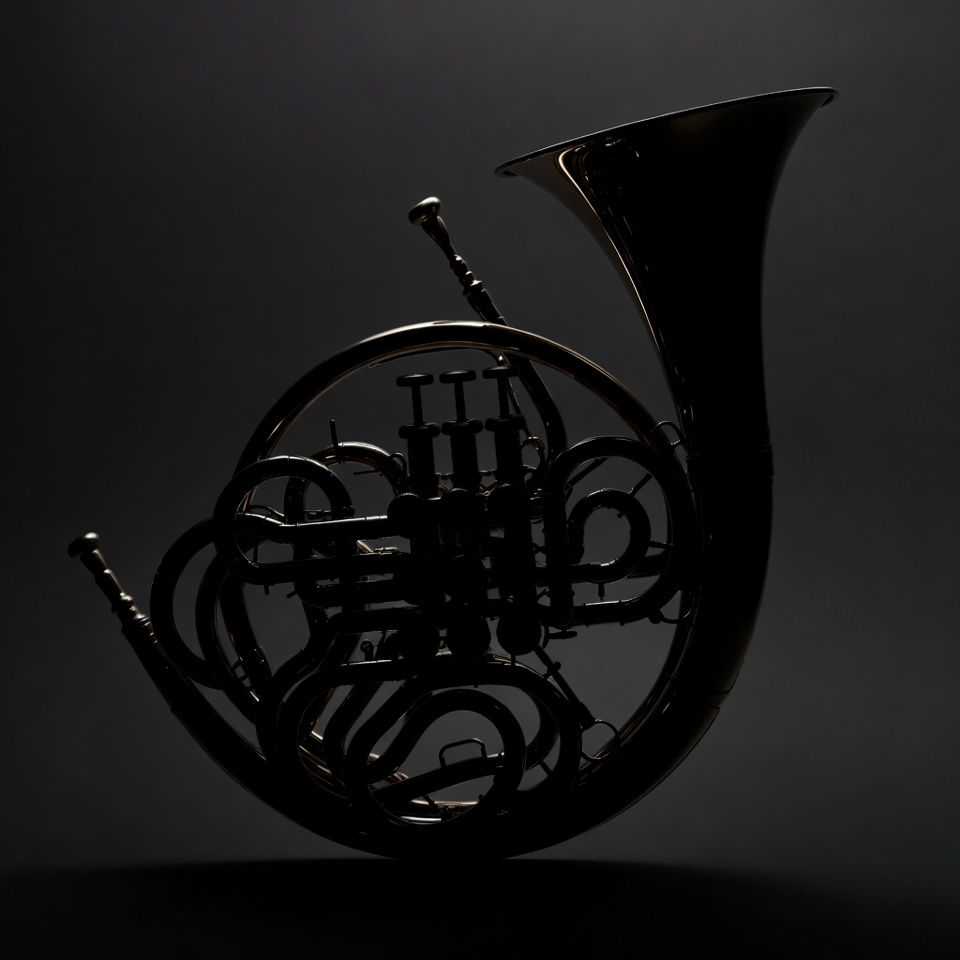 French Horn Silhouette on Black Background