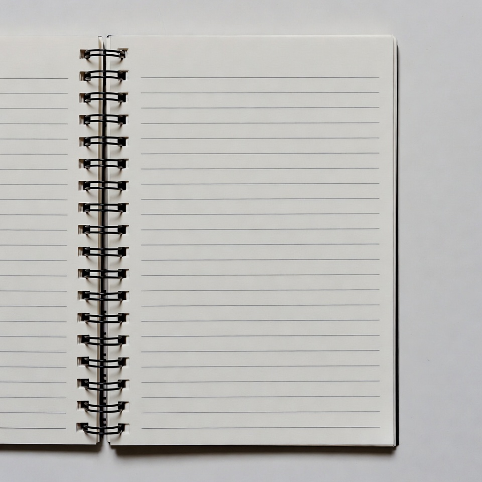 blank notebook, empty pages, journal, lined paper, metal spiral, notepad, office supply, open notebook, ruled notebook, spiral binding, spiral notebook, stationery, white background, white pages, notebook
