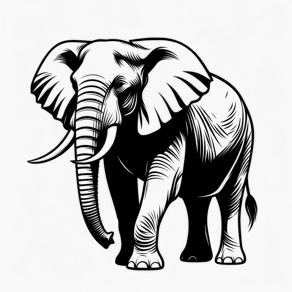 Black and white elephant illustration