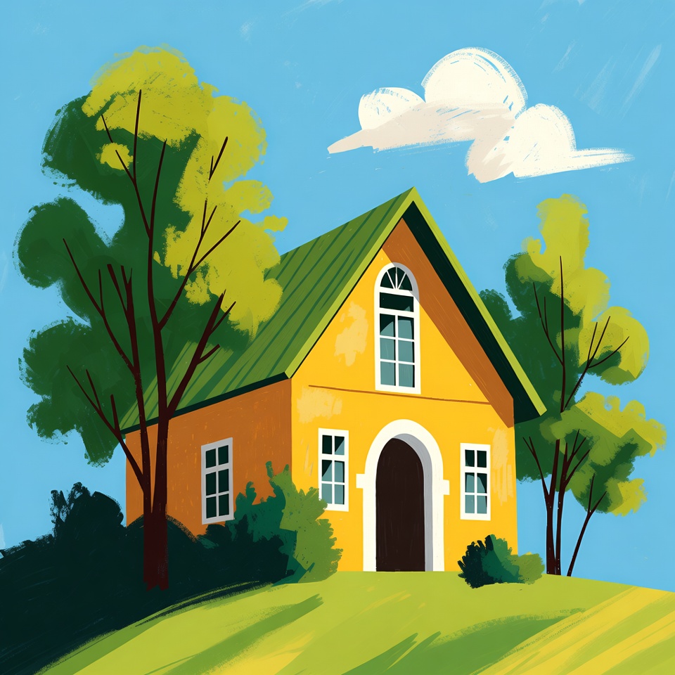 Yellow house with green roof illustration