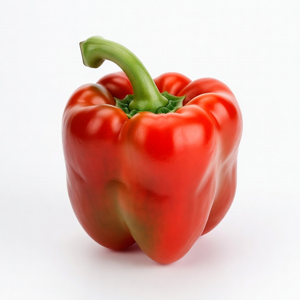 bell pepper, capsicum, food, fresh vegetable, glossy, green stem, healthy eating, isolated, kitchen ingredient, produce, raw pepper, red pepper, ripe, vegetable, white background, red bell pepper
