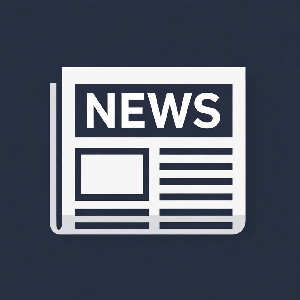 A simple white line art icon of a folded newspaper on a dark blue background. The word 'NEWS' is prominently displayed in bold white letters across the top. It features rectangular sections and horizontal lines mimicking newspaper columns.