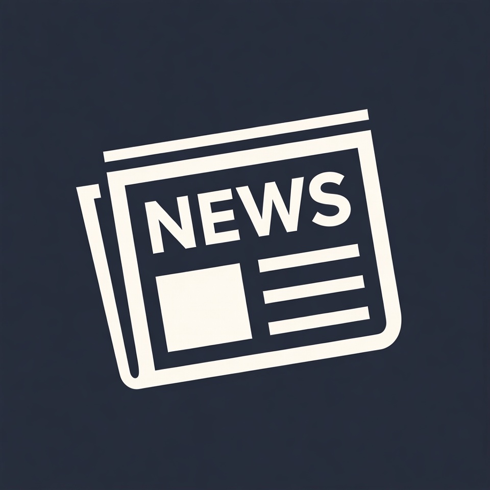 A simple line art icon of a folded newspaper on a dark background. The word 'NEWS' is prominently displayed in bold letters across the top. It features a blank rectangular space below for headlines and two horizontal lines suggesting text.