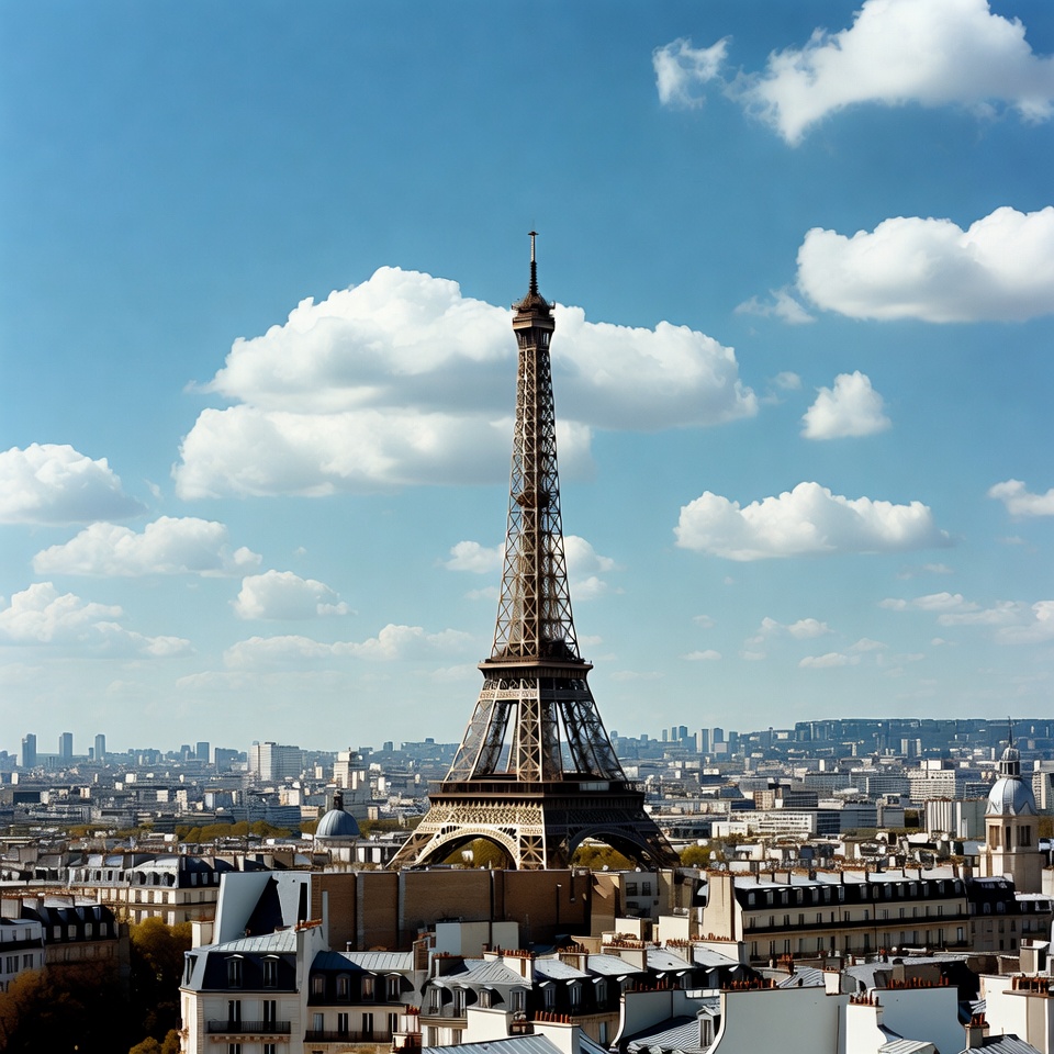 European, France, Paris, architecture, blue sky, buildings, capital, cityscape, iconic, landmark, monument, panorama, rooftops, skyline, tourism, tower, travel, urban, view, white clouds, Eiffel Tower