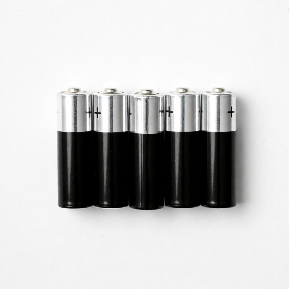 AA batteries, alkaline batteries, battery pack, battery row, black batteries, durable batteries, energy cells, five batteries, isolated background, power cells, product photo, silver batteries, white background, batteries