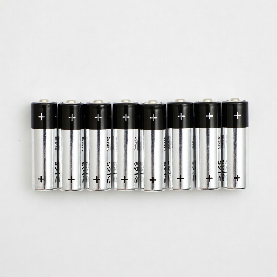 alkaline batteries, batteries, battery pack, battery row, battery tops, black batteries, disposable batteries, energy cells, isolated batteries, plus terminal, power cells, silver batteries, ten batteries, white background, AA batteries