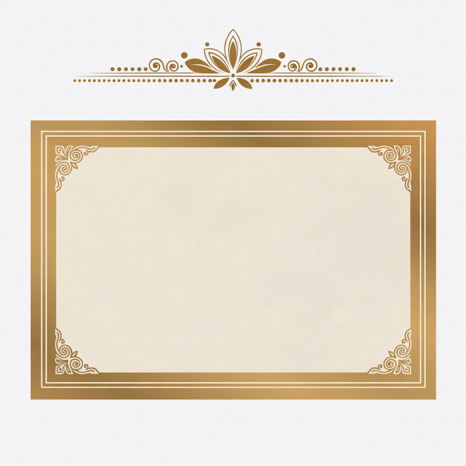 beige background, blank certificate, certificate template, clipart, corner ornaments, decorative frame, elegant border, filigree pattern, floral motif, gold filigree, illustration, isolated background, ornate border, swirl design, top decoration, vector graphic, gold frame