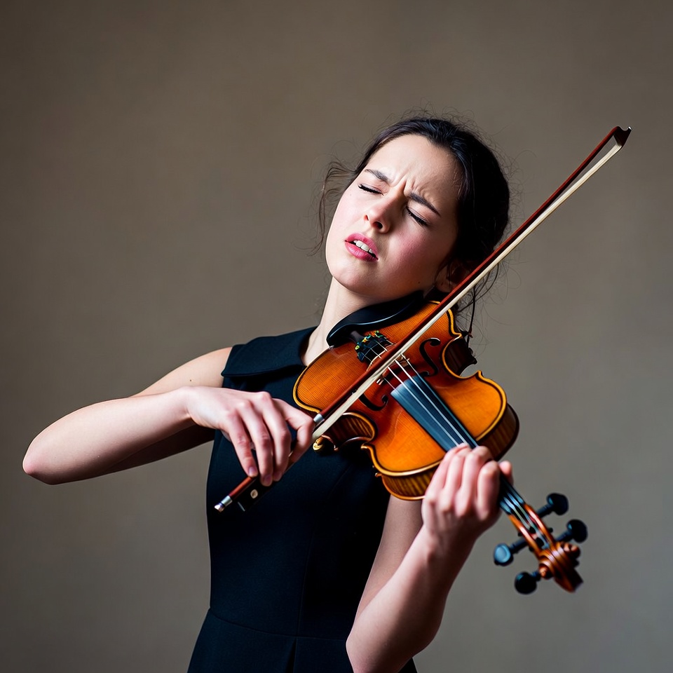 Woman playing violin intensely