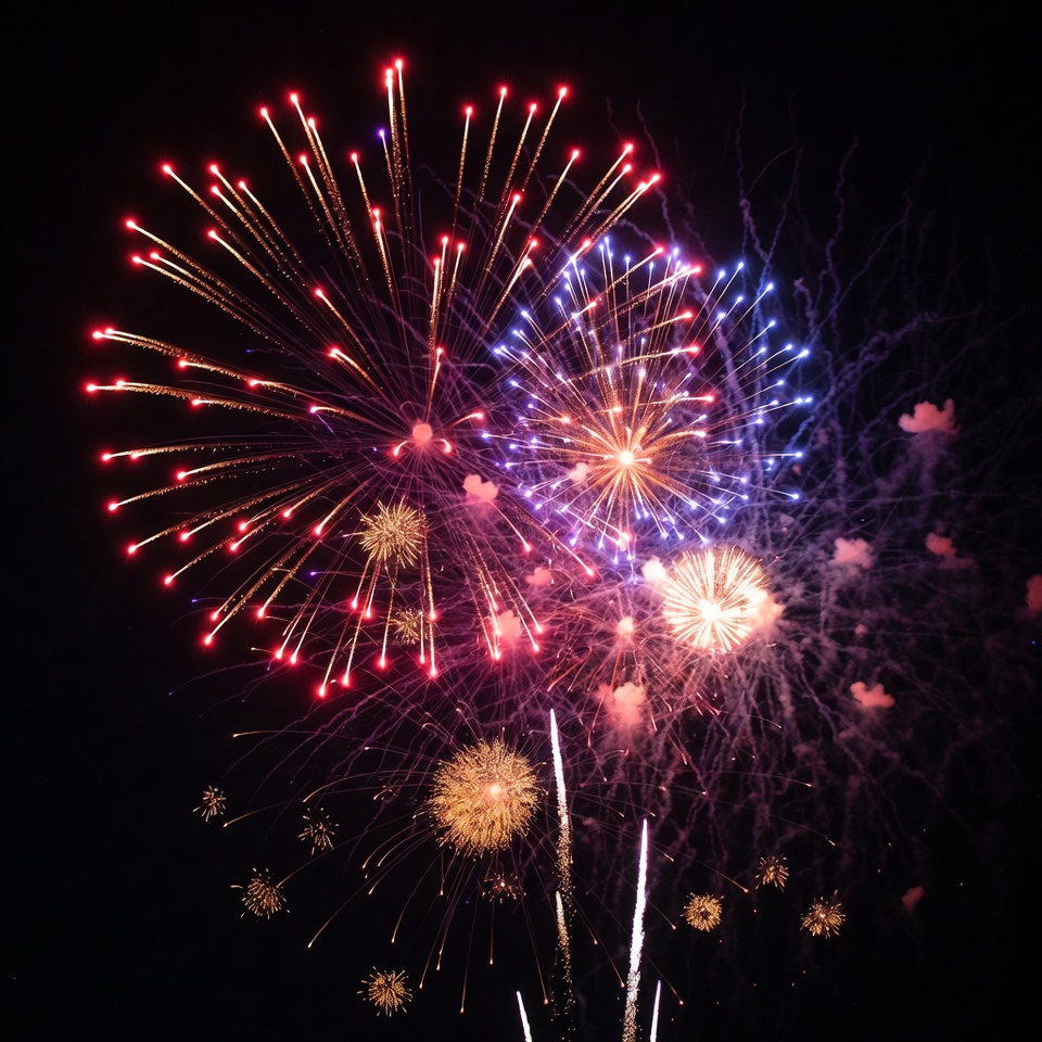blue fireworks, bursts, celebration fireworks, colorful fireworks, dark background, exploding fireworks, festival lights, fireworks display, gold fireworks, holiday fireworks, independence day fireworks, new year fireworks, night sky, purple fireworks, pyrotechnics, red fireworks, sparks, fireworks