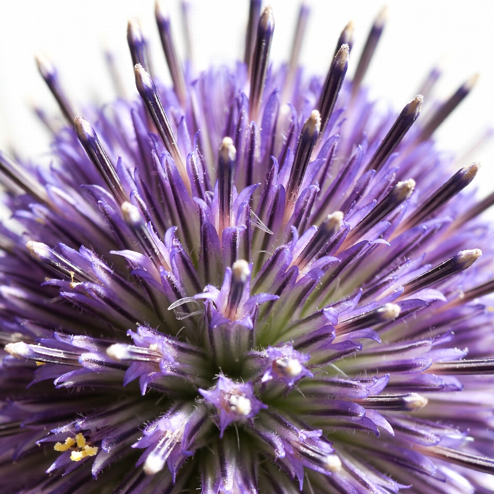 echinops, floral macro, flower closeup, globe thistle, isolated flower, purple bloom, purple flower, purple thistle, spiky flower, spiky purple, spiny bracts, thistle head, thistle plant, white background, thistle flower