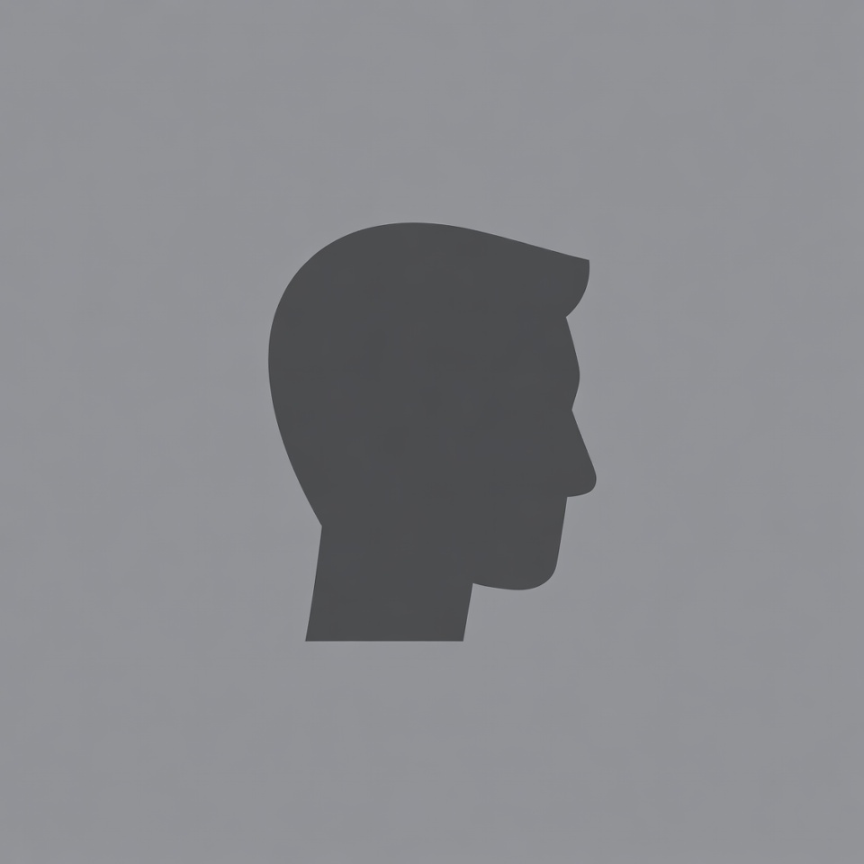 A simple black silhouette of a man's head in profile view against a light gray background. The outline features short hair, a straight nose, and defined jawline. It is a minimalist vector illustration isolated on a solid background.