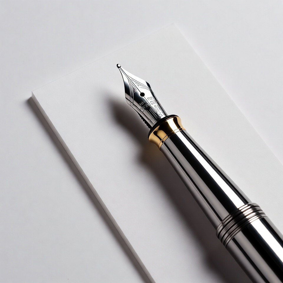 Silver fountain pen on white paper