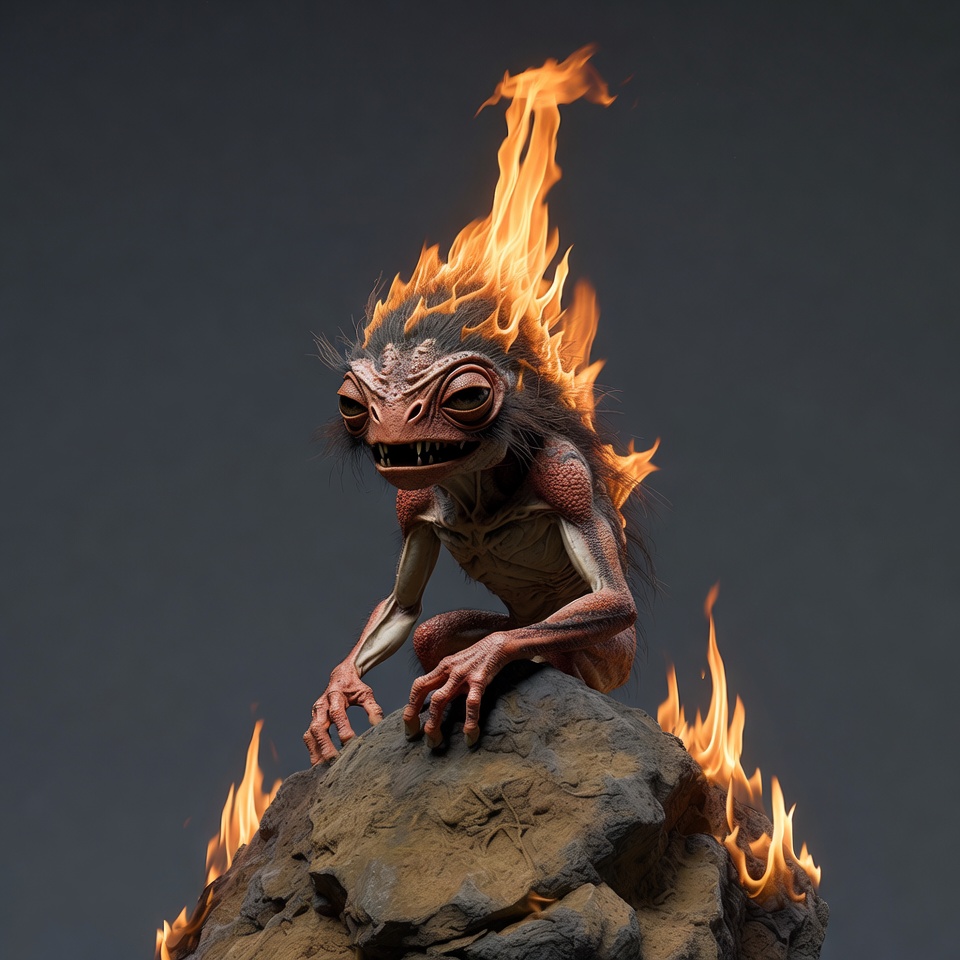 Fiery Frog Creature on Rock