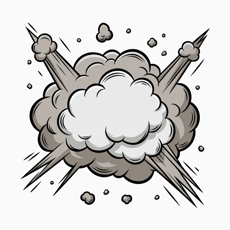 black and white, blast, burst, cartoon, clipart, cloud, comic, debris, dust, dynamic, effect, explosion cloud, graphic, illustration, impact, isolated background, powder, rays, smoke, vector, explosion