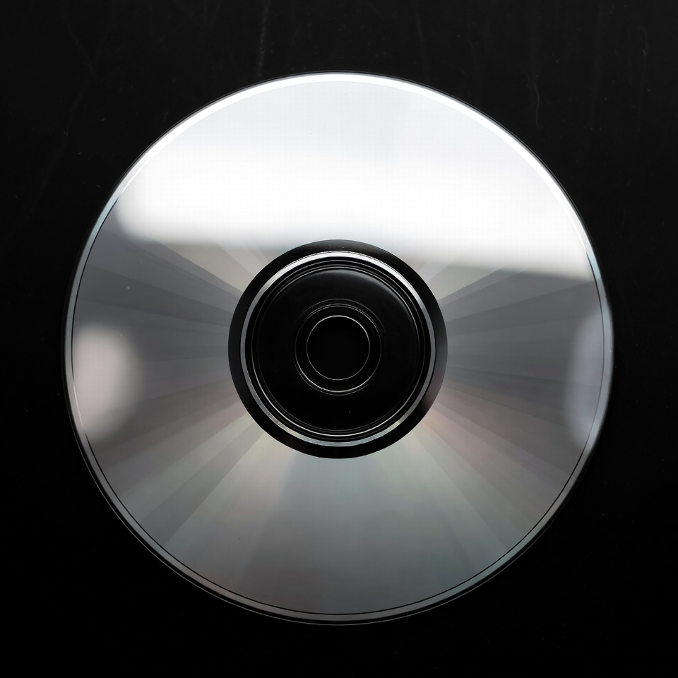 black background, blank CD, close-up, compact disc, data disc, disc, hub, isolated, media, metallic, music CD, optical disc, product shot, reflective, round, shiny, silver, storage, CD