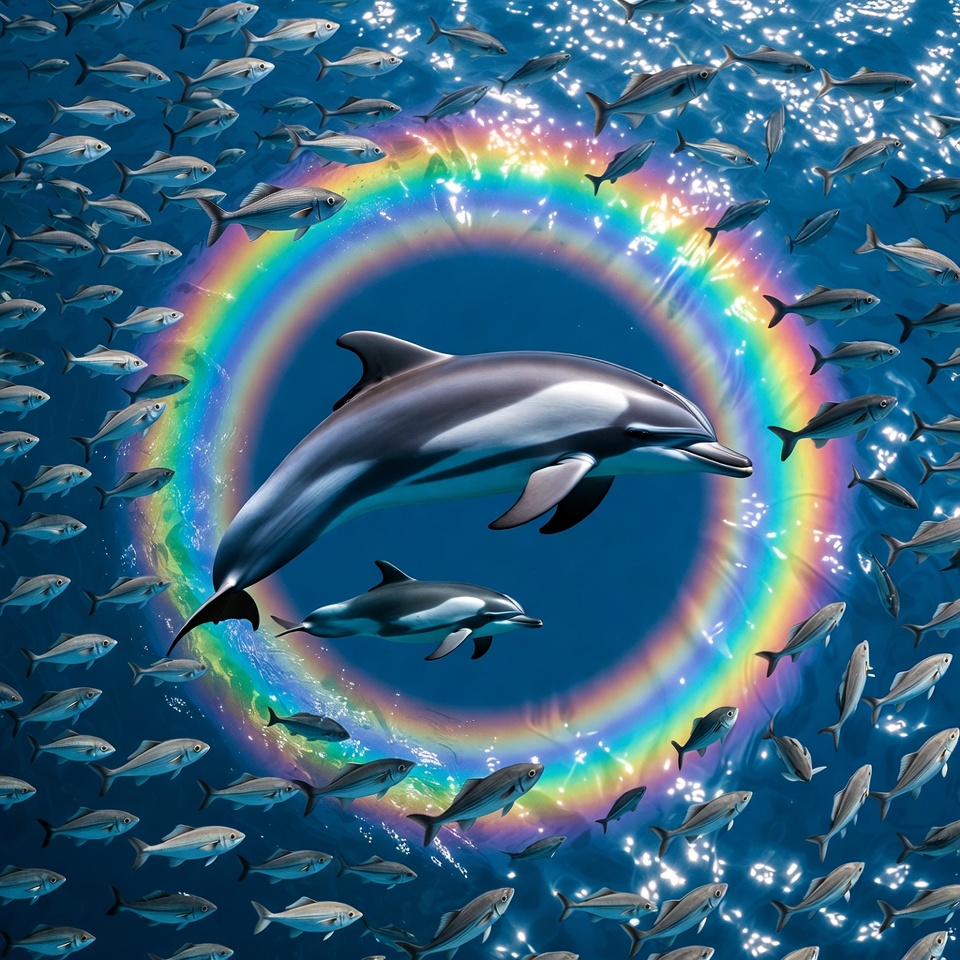Dolphins in Rainbow Circle with Fish