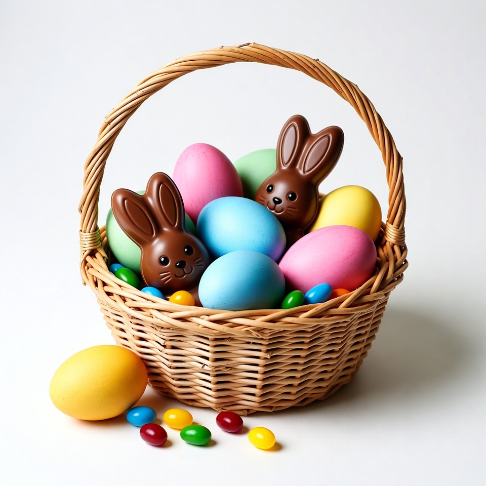Easter Basket with Chocolate Bunnies and Eggs
