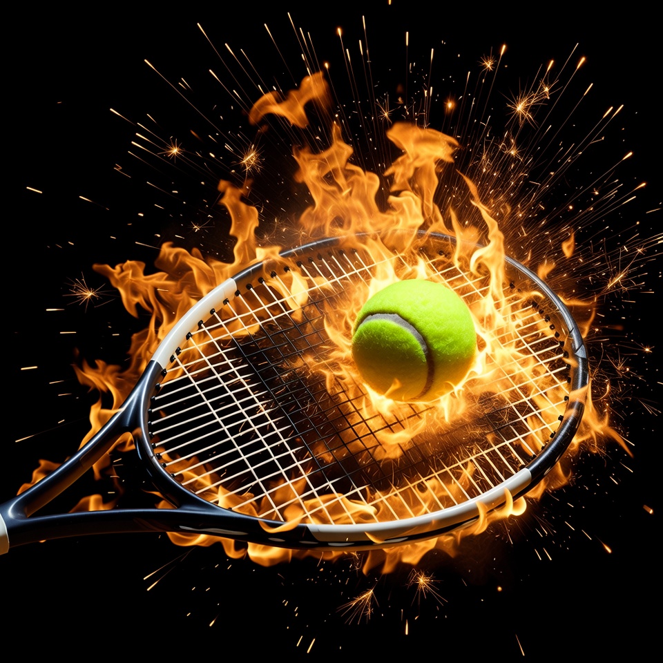 Tennis Ball and Racket in Flames