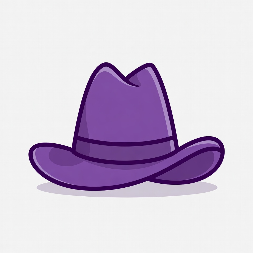 cartoon hat, clipart, flat design, hat graphic, hat illustration, isolated background, purple color, purple cowboy, purple hat, simple illustration, vector hat, western hat, wide brim hat, cowboy hat