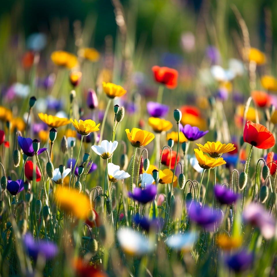 blooming poppies, blossoms, bokeh background, buds, colorful flowers, field of flowers, floral field, flower closeup, flower meadow, garden, green grass, meadow flowers, nature, orange blooms, petals, poppy field, purple poppies, red poppies, stems, summer flowers, vibrant colors, white flowers, wildflowers, yellow flowers, poppies