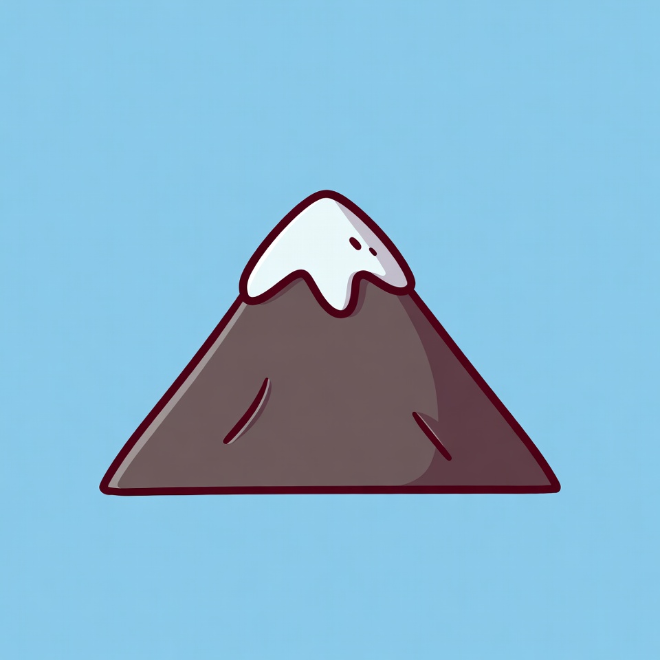 A simple cartoon illustration of a tall mountain with a white snowy peak sits on a solid blue background. The mountain has a brown triangular shape with smooth outlines and white snow cap.