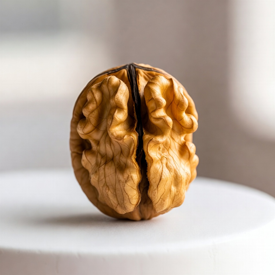 Split Walnut on White Surface