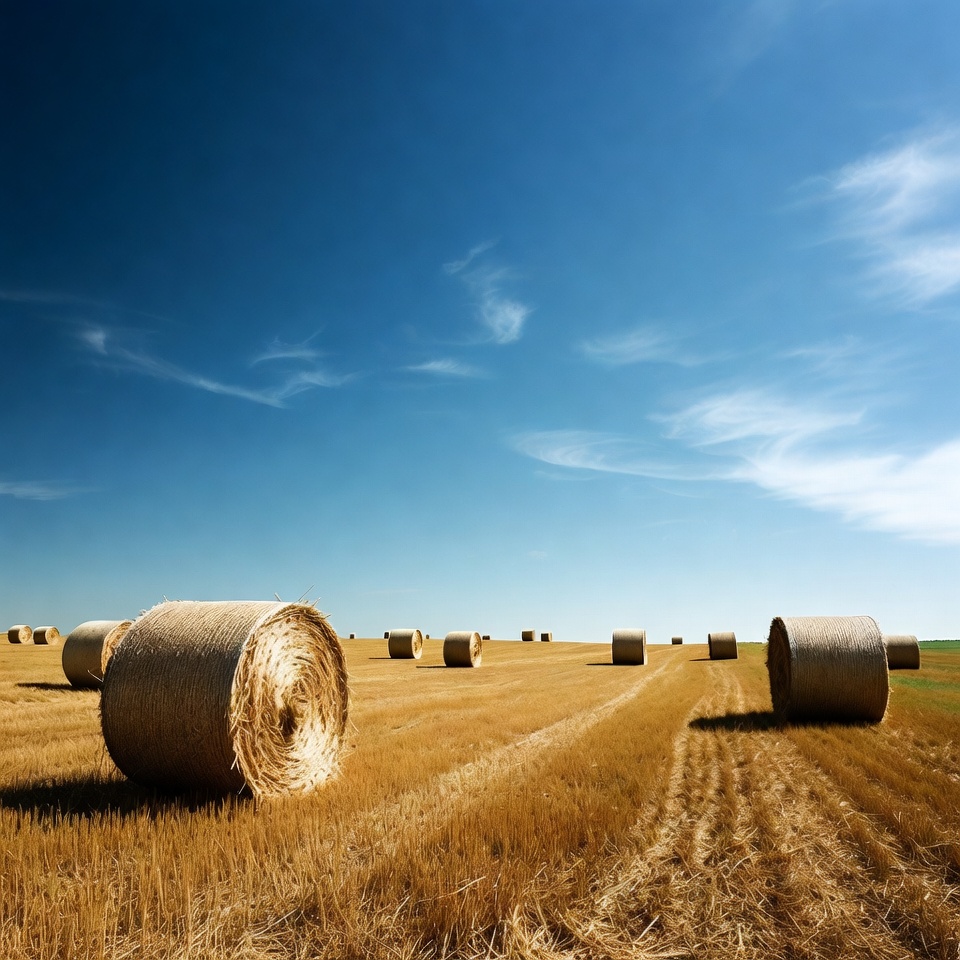 agriculture, bales, blue sky, clouds, countryside, crop field, farm field, farmland, field, golden field, grass field, harvest, hay, nature, outdoor, rolled hay, round bales, rural landscape, scenic field, sky, straw bales, stubble field, summer field, sunny day, wheat field, yellow hay, hay bales