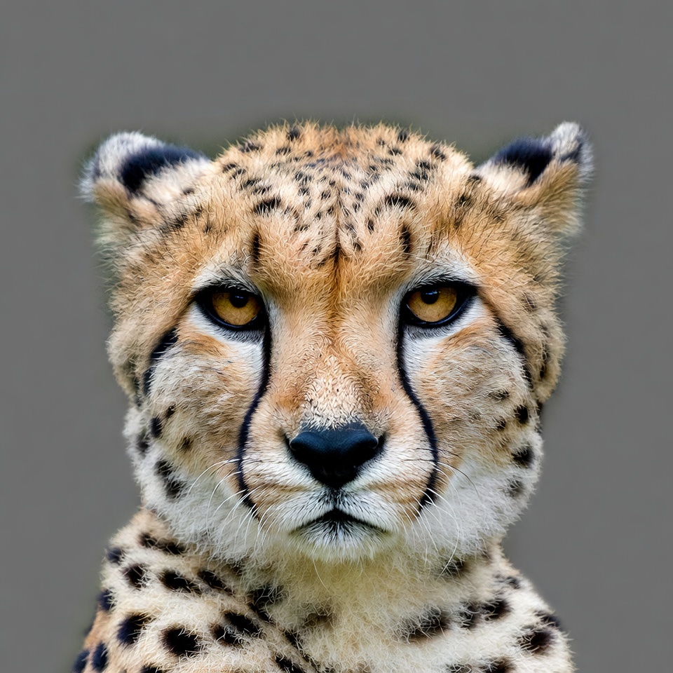 big cat, carnivore, close-up, ears, feline, gray background, head shot, isolated, mammal, portrait, predator, safari animal, spotted fur, whiskers, wild animal, wildlife, yellow eyes, cheetah