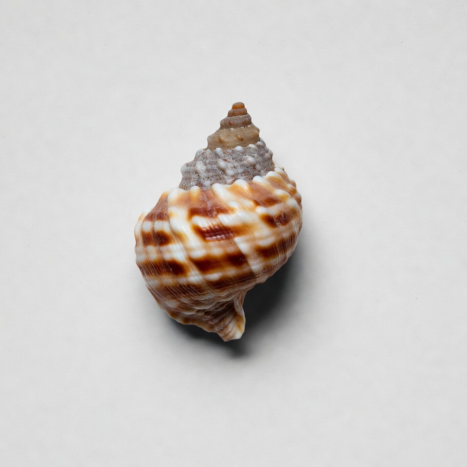 beach shell, brown shell, conch shell, isolated background, marine shell, mollusk, nature, ocean, sea, shell, spiral shell, striped shell, textured shell, white shell, seashell