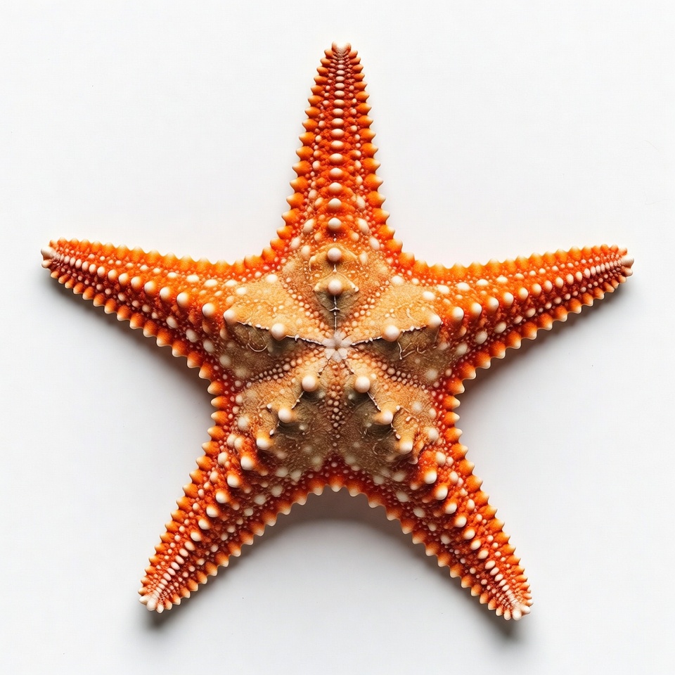 beach, echinoderm, five arms, invertebrate, isolated, marine animal, nature, ocean creature, orange starfish, sea star, seafood, shell, spiny starfish, underwater, white background, wildlife, starfish