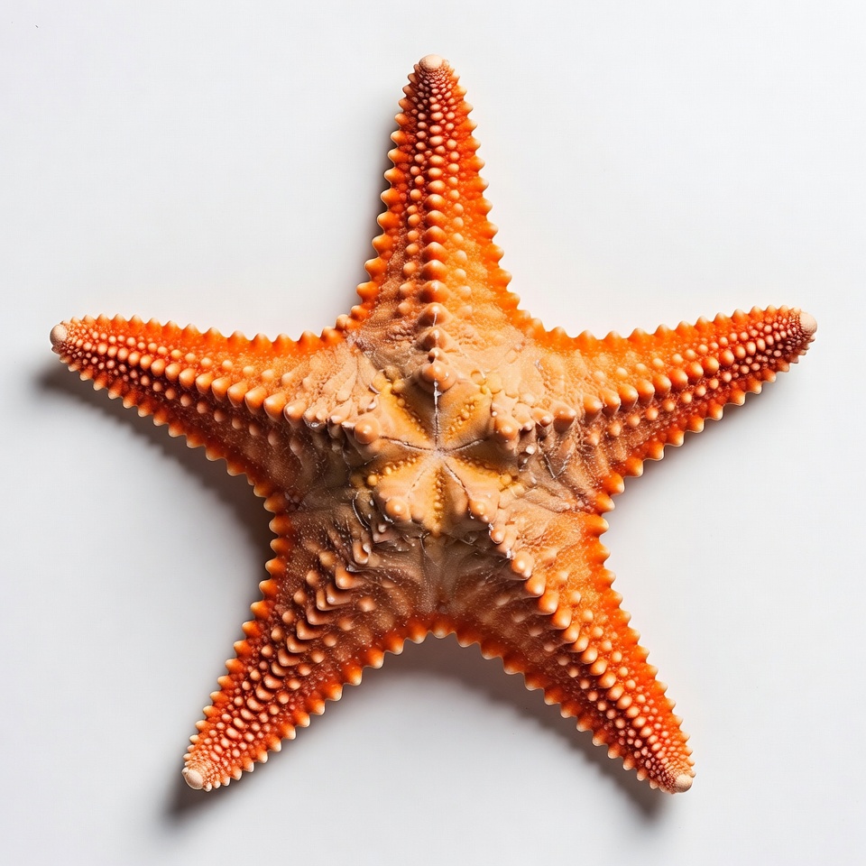 echinoderm, five arms, isolated background, marine animal, ocean creature, orange starfish, sea life, sea star, spiny texture, white background, wildlife, starfish