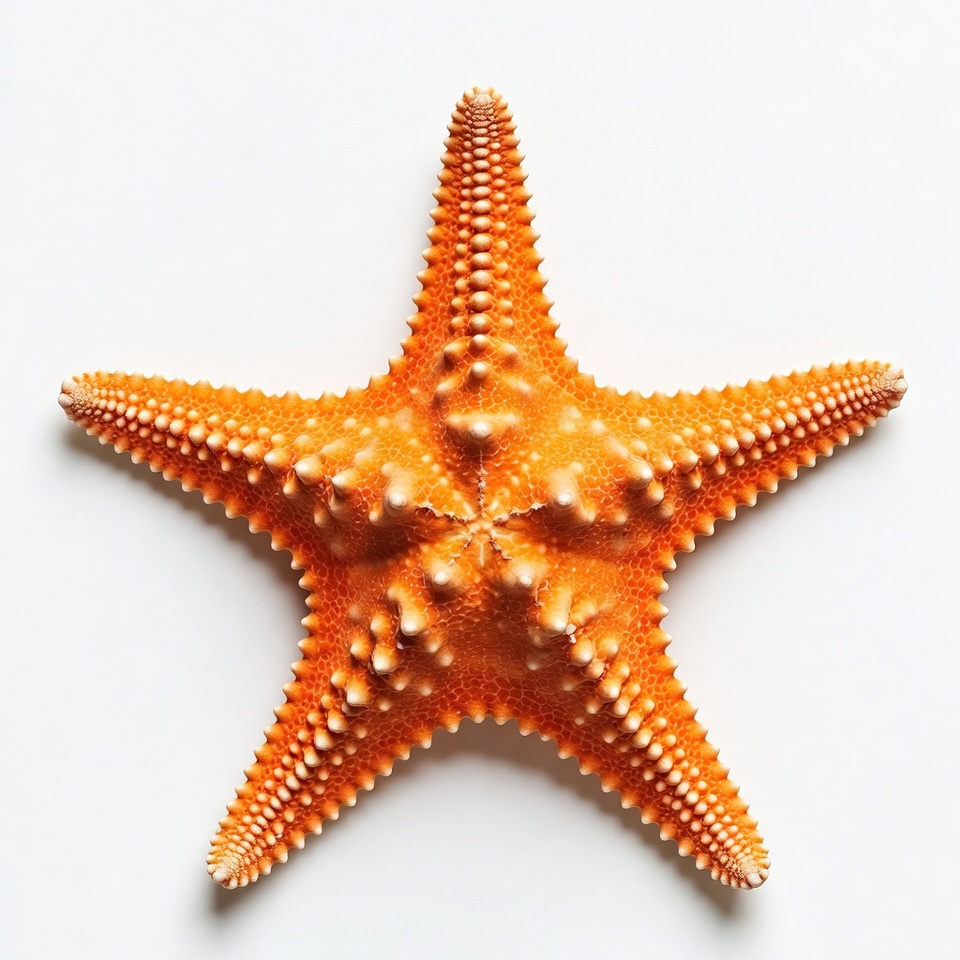 beach, five arms, isolated, marine animal, nature, ocean creature, orange starfish, sea star, seafood, shell, spiny texture, white background, wildlife, starfish
