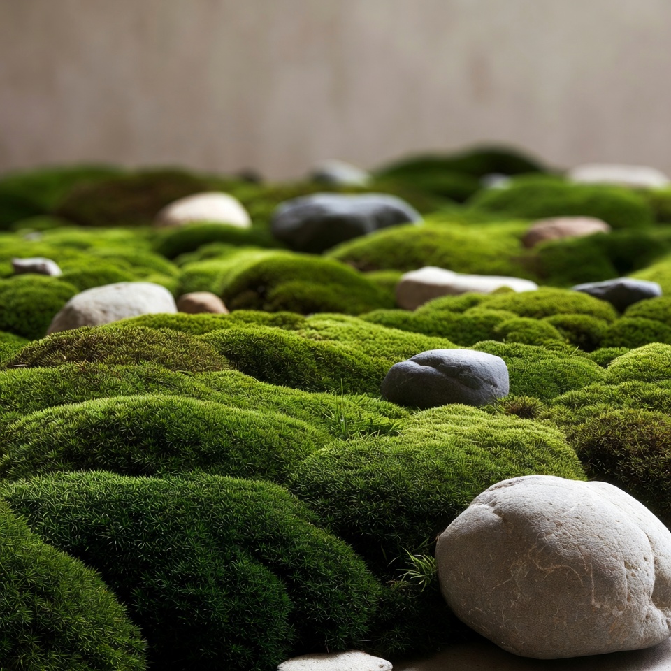 brown rocks, closeup, earthy tones, forest floor, gray rocks, green moss, lush moss, mossy rocks, natural background, nature, outdoor texture, pebble moss, rocks, smooth stones, stones, textured moss, vibrant green, white rocks, zen garden, moss