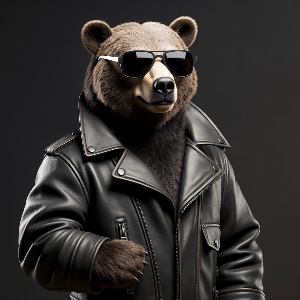 Bear wearing sunglasses and leather jacket