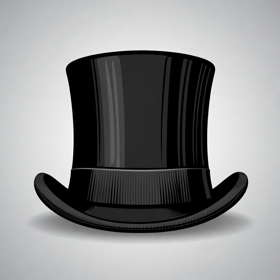 black hat, cartoon hat, clipart, elegant hat, fashion accessory, formal hat, gentleman hat, gray background, illustration, isolated background, mens hat, shiny hat, vector art, vintage hat, top hat
