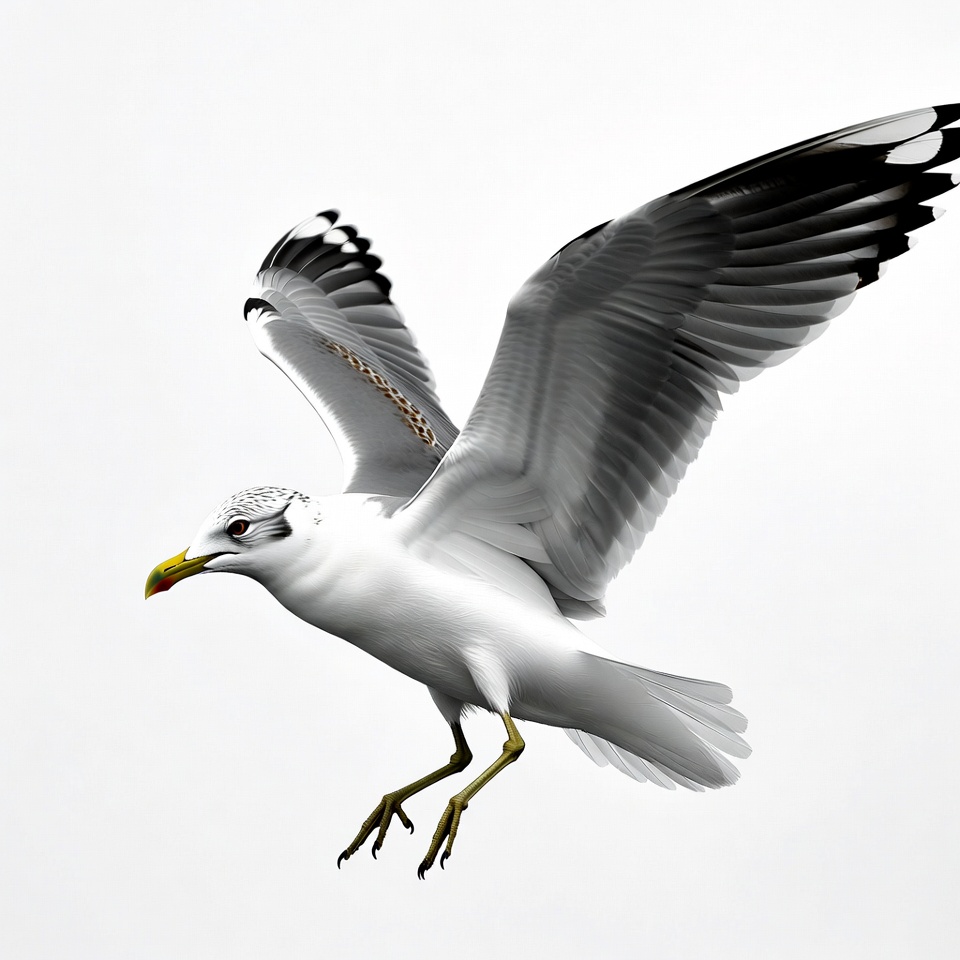 animal, bird, bird flight, clipart, flying bird, flying seagull, gray wings, illustration, isolated background, seabird, seagull wings, white bird, wildlife, wings spread, yellow beak, seagull