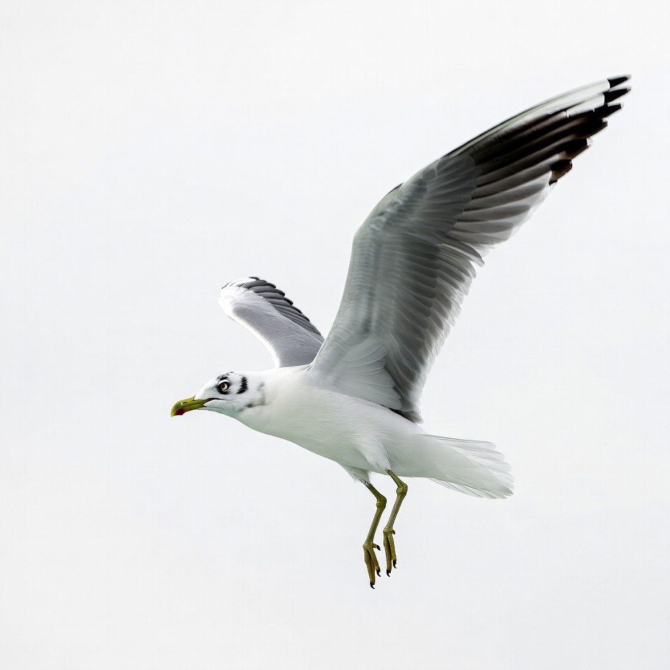 avian, bird, black wingtips, flying bird, flying seagull, gray wings, isolated background, sea gull, seabird, white bird, wildlife, wings spread, yellow beak, yellow legs, seagull
