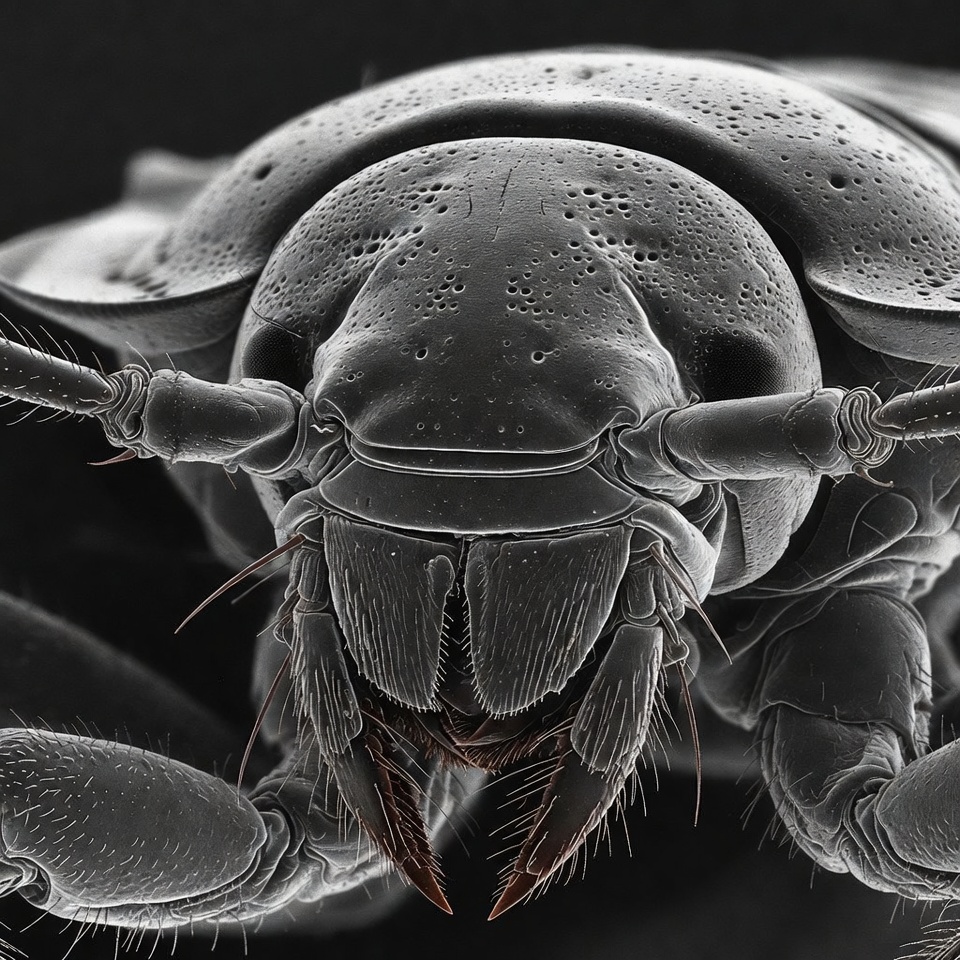 SEM image, antennae, arthropod, bug, close-up, compound eyes, detailed, exoskeleton, grayscale, hairs, head, insect, isolated background, legs, macro photography, mandibles, micrograph, mouthparts, nature, scanning electron microscope, texture, wildlife, beetle