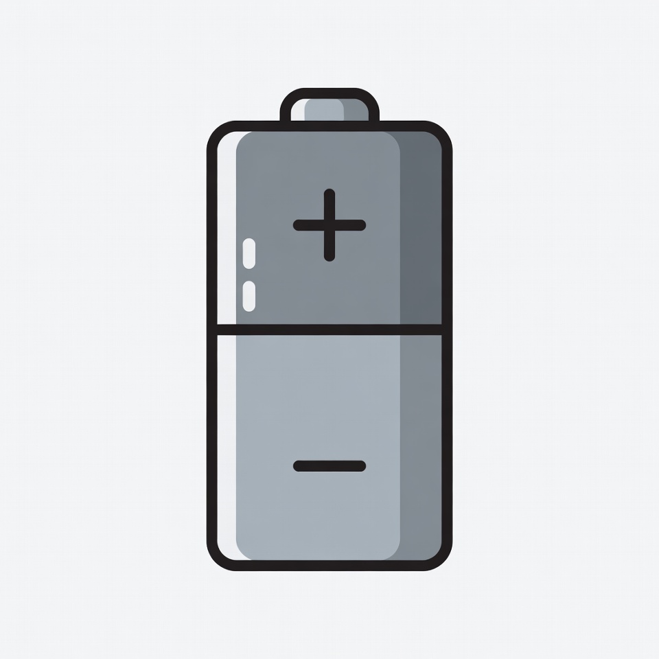 AA battery, clipart, energy, flat design, gray battery, icon, illustration, isolated background, minus sign, negative terminal, plus sign, positive terminal, power cell, simple icon, vector graphic, battery