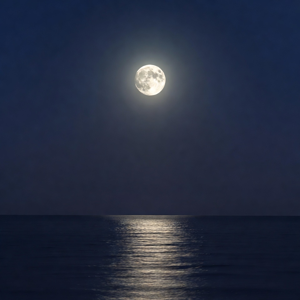 Full Moon Reflecting on Calm Ocean