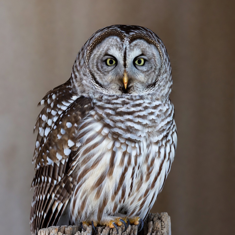Barred Owl on Wooden Perch