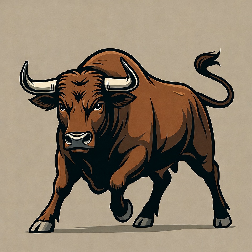 angry bull, animal, beige background, brown bull, bull illustration, charging bull, clipart, digital illustration, fierce animal, horns, illustration, isolated background, muscular bull, vector art, bull