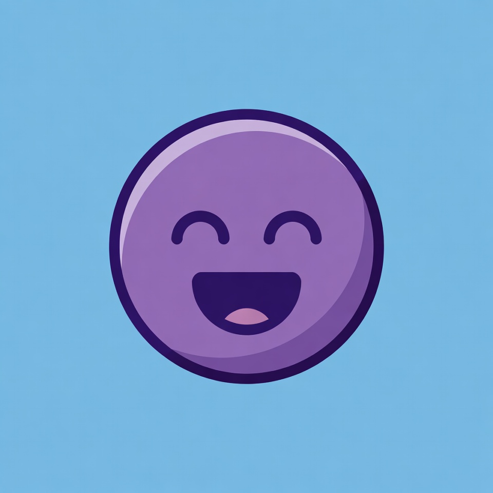 blue background, cartoon emoji, clipart, closed eyes, digital illustration, emoji illustration, fun emoji, happy face, isolated background, purple color, purple emoji, smiley face, vector graphic, wide smile, smiling emoji