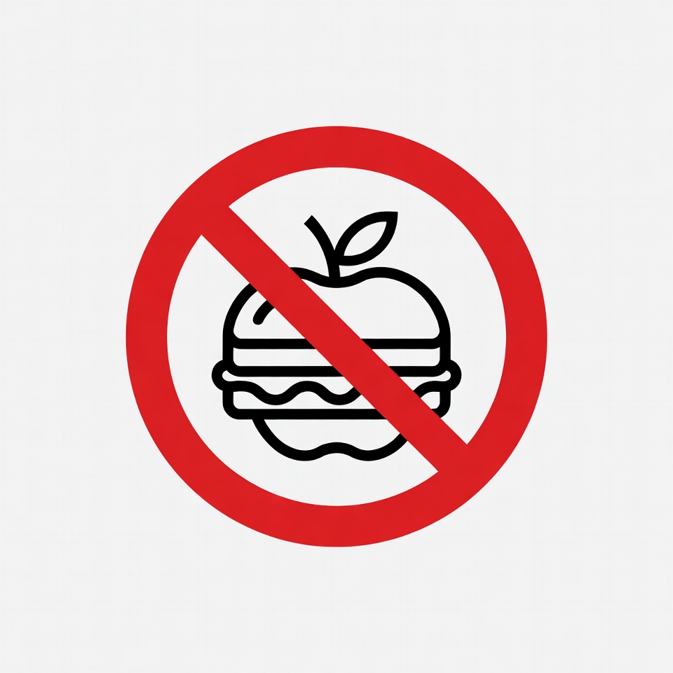 apple icon, ban symbol, burger icon, clipart, crossed out, diet icon, fast food, forbidden food, healthy eating, illustration, isolated background, leaf, line art, no burger, no junk food, nutrition symbol, prohibition sign, red circle, vector, no apple