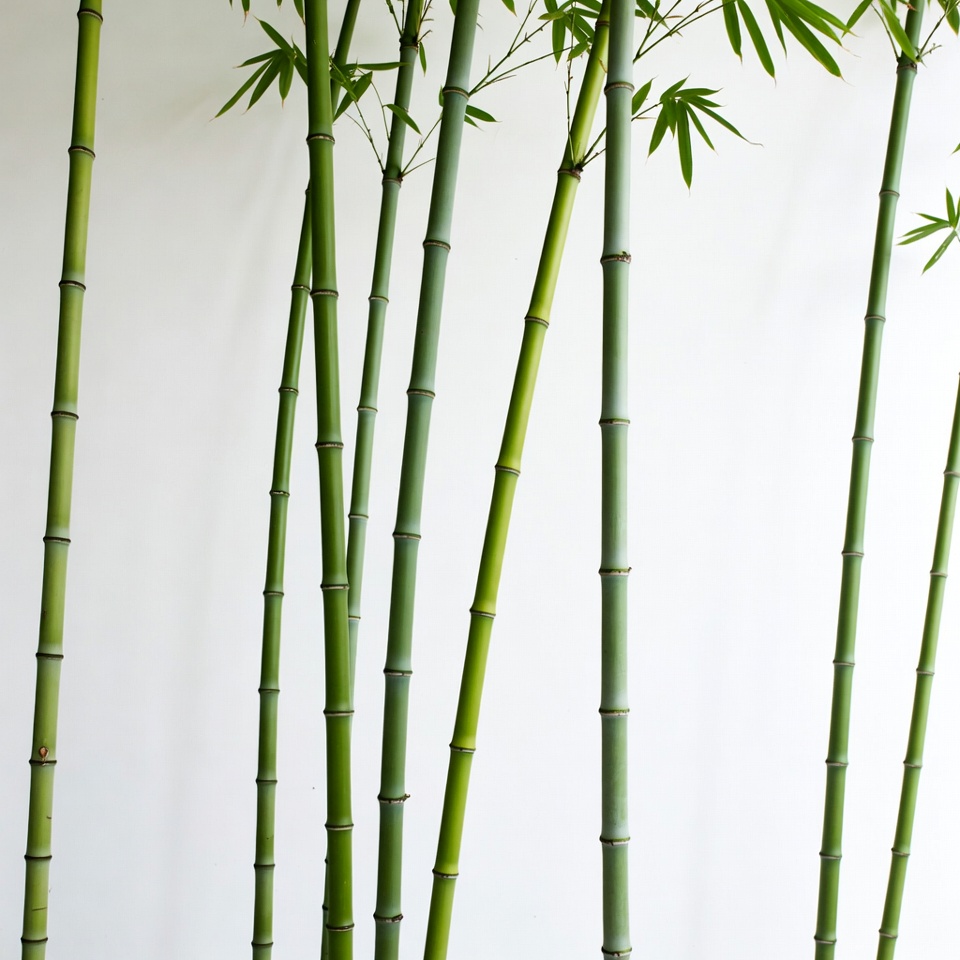 Tall Bamboo Stalks on White Background
