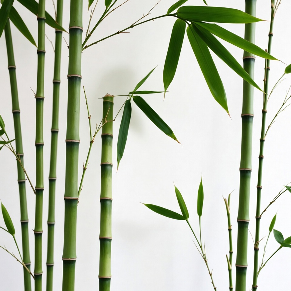 Green Bamboo Stalks on White Background