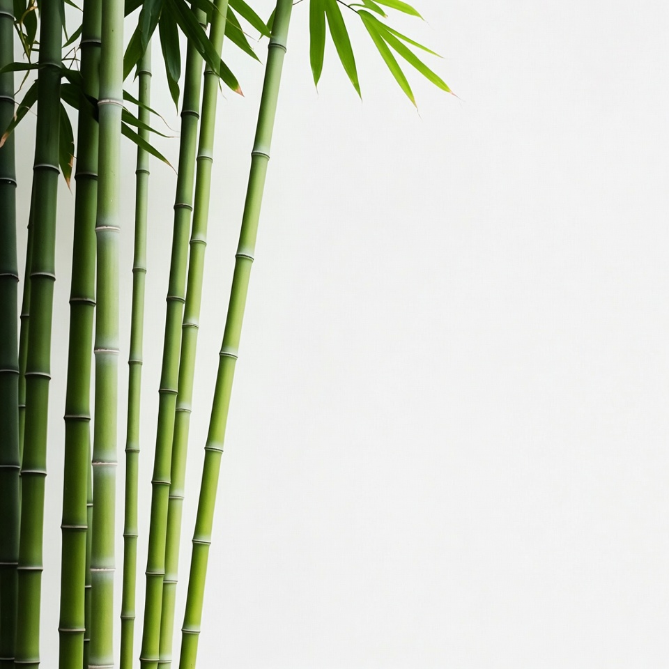 Green Bamboo Stalks on White Background