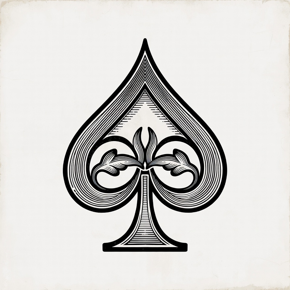 ace of spades, black spade, card suit, detailed drawing, engraving, floral design, illustration, isolated background, line art, ornate spade, playing card, poker symbol, vector art, vintage graphic, spade