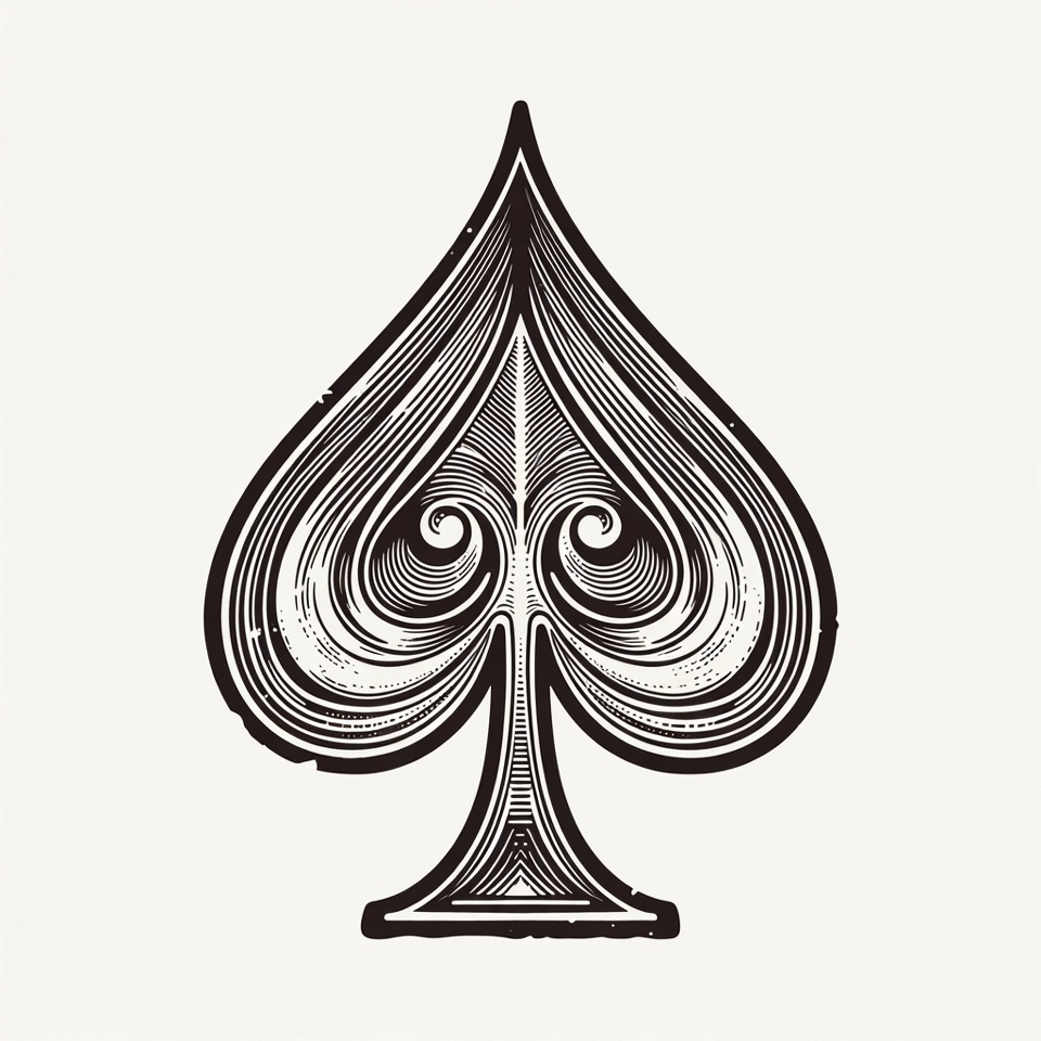 ace spades, background, black white, cards, casino, detailed, engraving, game, icon, illustration, intricate, isolated, line art, playing card, poker, spades, suit, symbol, vector, spade