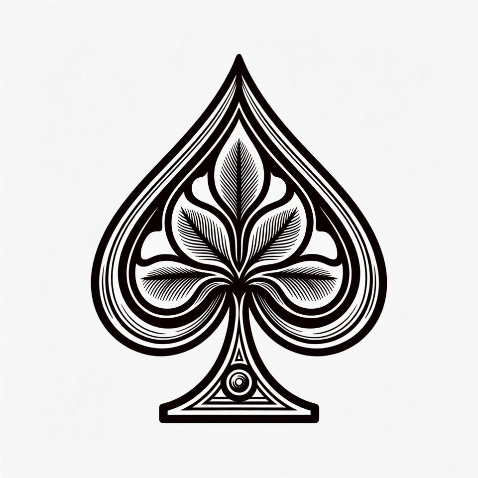 ace spade, black, cards, casino, detailed, game, gothic, graphic, illustration, isolated, leaf pattern, line art, ornate, playing card, poker, suit, symbol, vector, white background, spade